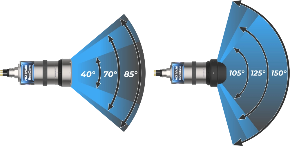 When initially launched, the HDMSC-4000 series cameras were available with either a 105deg or 72deg horizontal field of view. DeepSea has now expanded this to include options for an ultra-wide 150deg and low distortion 125deg wide angle in the dome port configuration, along with an 85deg and a narrow 40deg horizontal option in the flat port housing. The new 2.0mm (150 deg HFoV) all-glass lens produces the widest field of view in its class with sharp corner-to-corner imaging and linear distortion that maintains consistent angular resolution across the field of view.